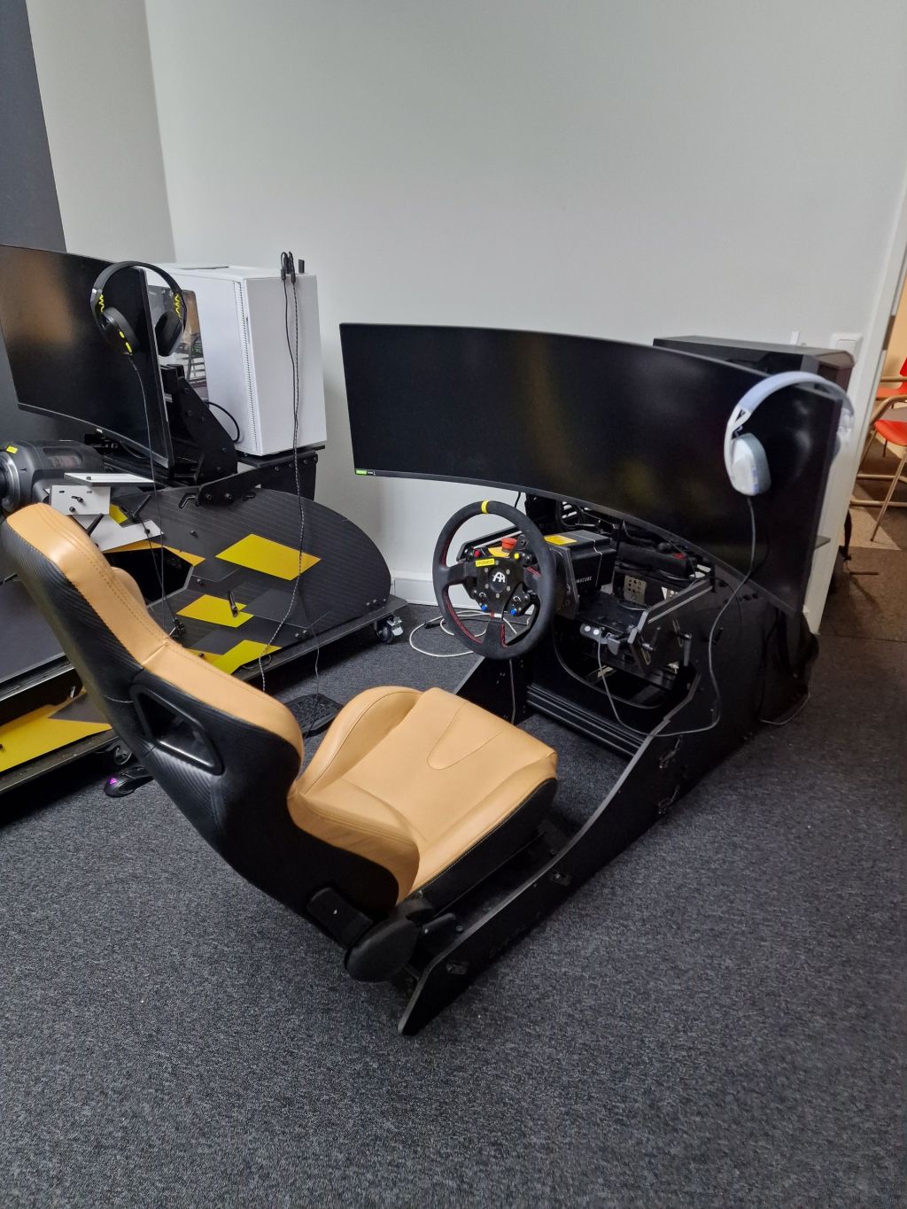 OP Semi-Pro ylpeilee upealla Samsung G9 49″ Super-ultrawide 240Hz näytöllä, joka tuo ajokokemukseen lisäkerroksen immersiota ja tyylikkyyttä. Näyttö täyttää näkökentän kaarevalla panoraamakuvallaan ja tarjoaa uskomattoman sulavan pelikokemuksen.
